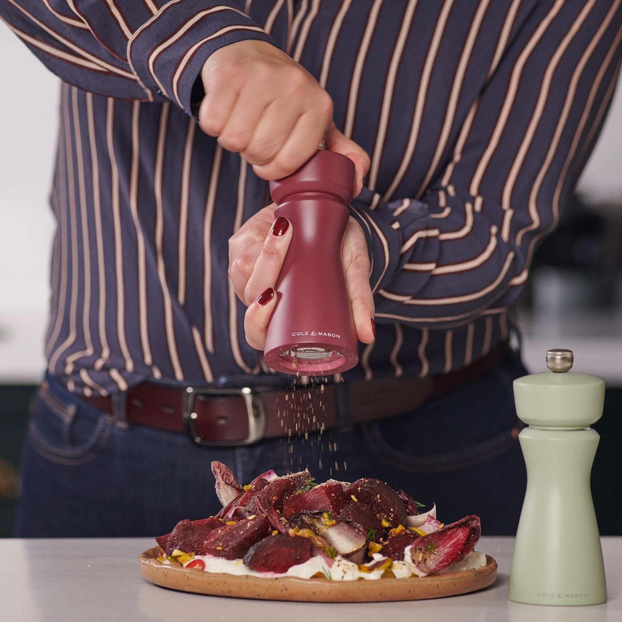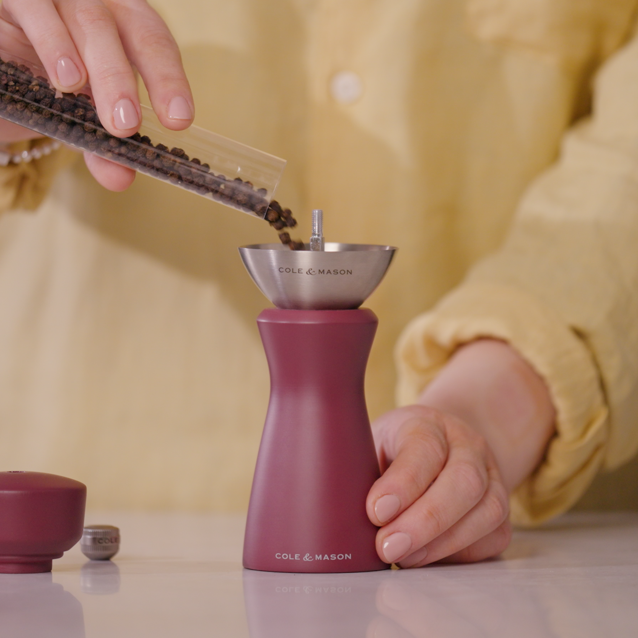 The Kenton Salt and Pepper Mill in Sichuan Pepper red finish combines expressive colour with everyday functionality. Featuring a ceramic mechanism suitable for both salt and pepper, this mill is sold as a singular mill and unfilled to let you decide what goes in. The deep, warm red tone makes a bold statement, while interchangeable knobs let you personalise each mill in the range. Ideal for kitchens that favour colour and character, this mill brings together custom style and long-lasting performance in one beautiful form.
